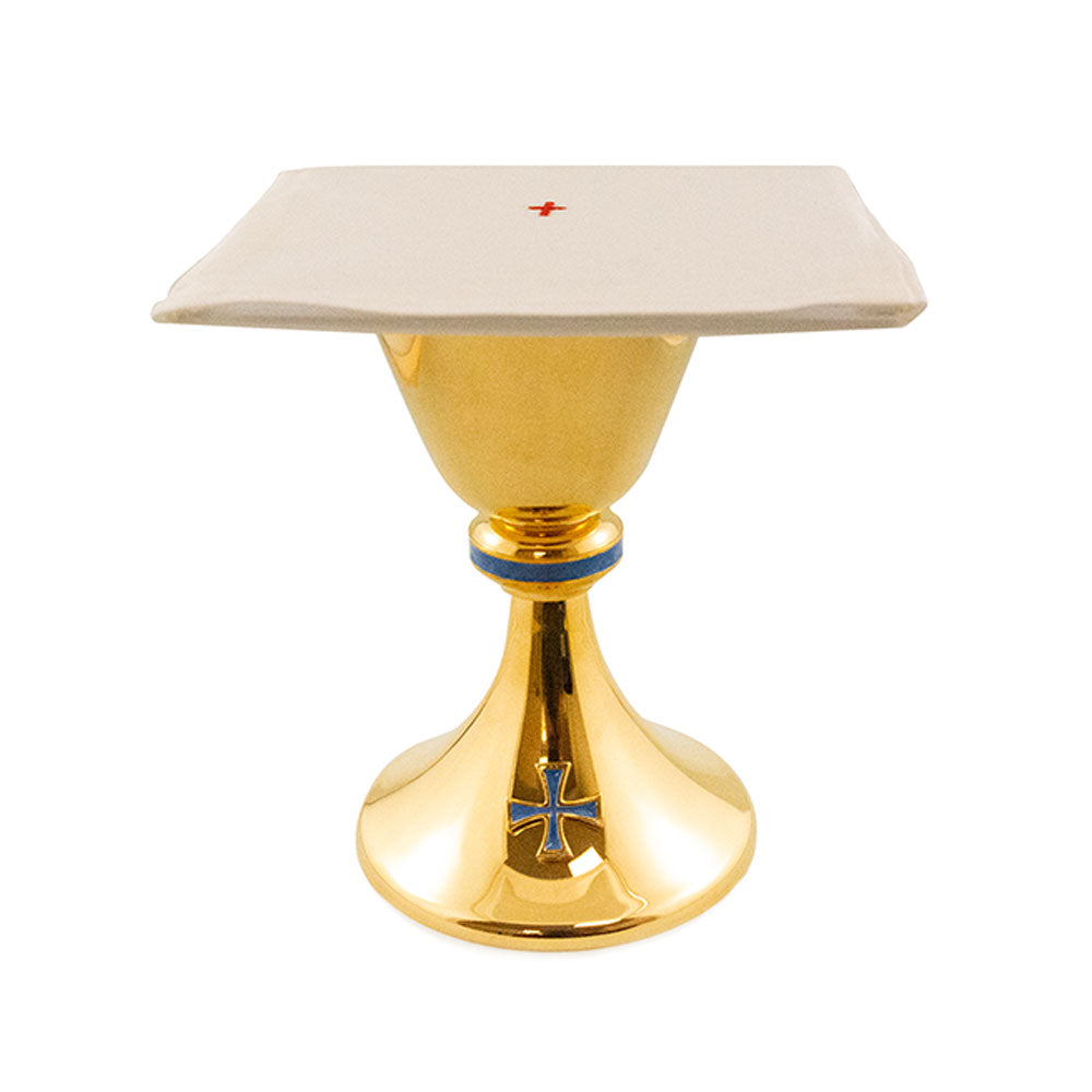 Pale avec intérieur de plastique amovible, tissu mélange 53% Lin, 47% Coton. Avec croix brodée rouge. Format: 16cm x 16cm (6'' x 6'').