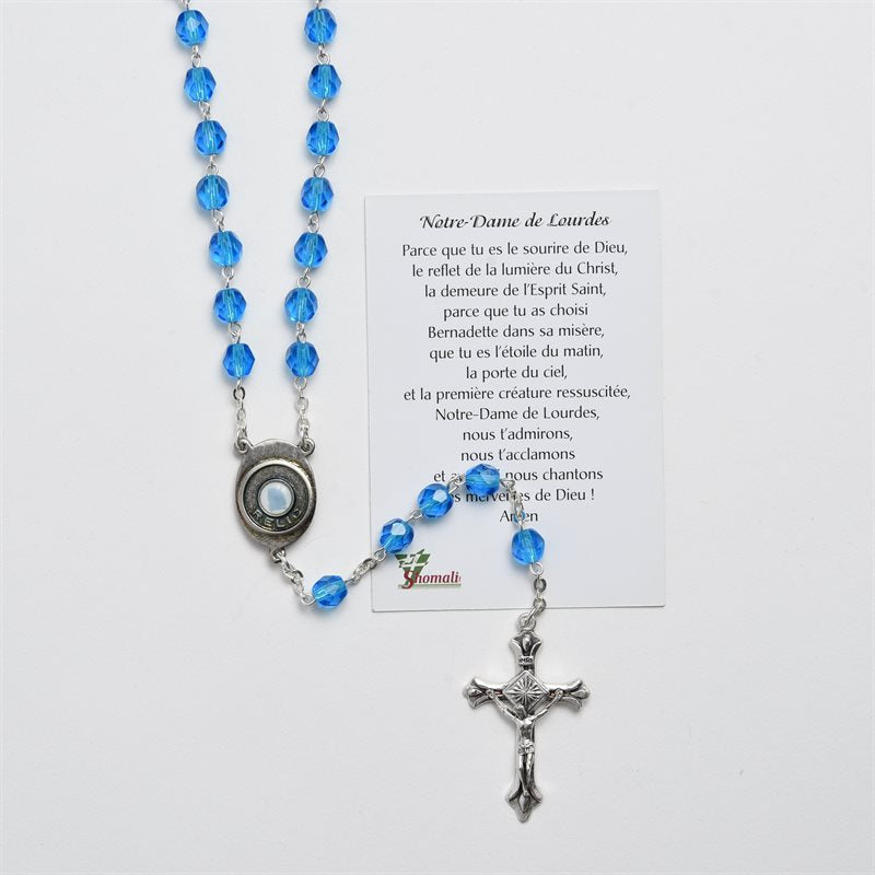 Chapelet Cristal Avec Relique De Lourdes Avec Carte Prière