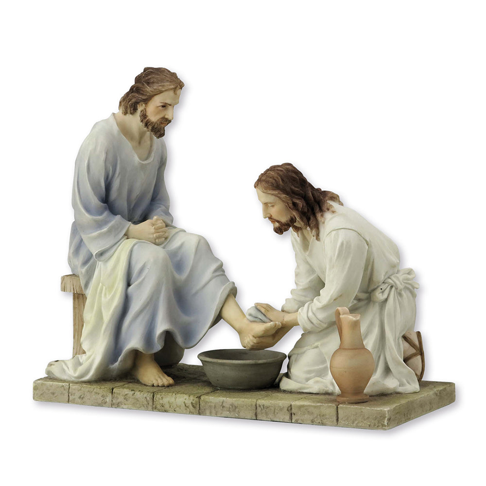 Statue de Jésus lavant les pieds de son disciple, 8.5'' x 4'' x 7.2 ''